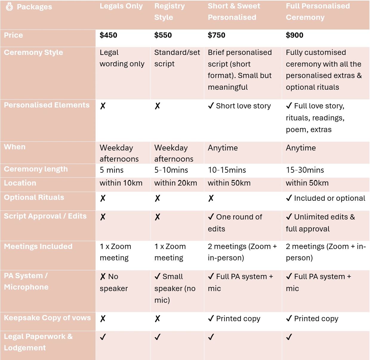 A completely curated ceremony crafted just for you — rich in storytelling, meaningful moments, and optional rituals. Perfect for couples wanting a ceremony that truly reflects their journey and values, with all the bells and whistles.